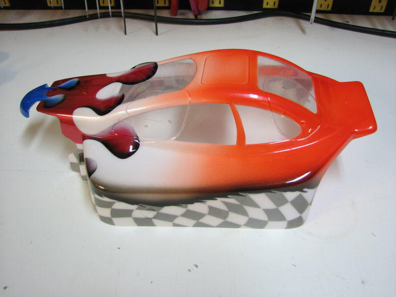 After more than a month of indecision, I finally settled on a theme for my first attempt at an airbrushed r/c car body. It turned out very well for a first try however I took some time to practice before hand which rewarded me well. Here is the end result: